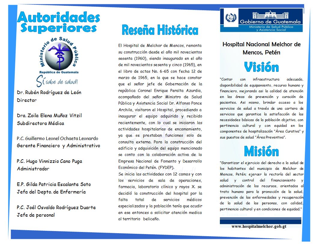 Hospital de Melchor de Mencos, es una institución de recuperación y rehabilitación de la salud.